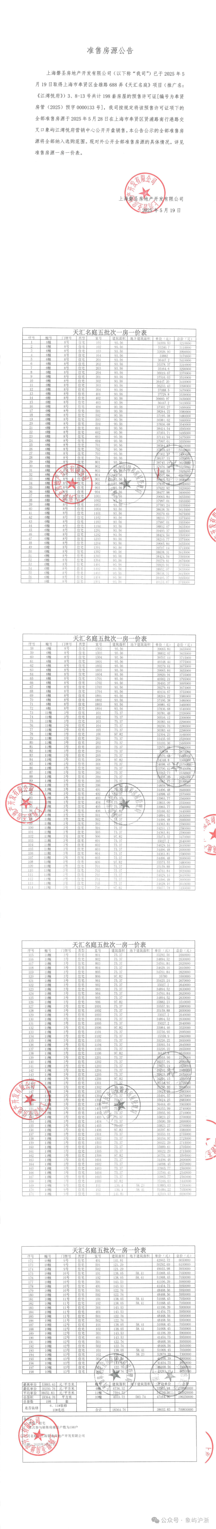 上期一房一价表发布: