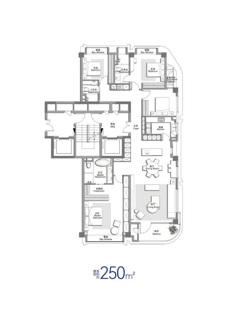 250㎡:内环内·小洋房·正四房;类一梯一户,功能性正四房,边套270度舒适采光,奢适5m+客厅/主卧,享受4000万以上级别的装标及社区品质;内环内稀缺洋房,类一梯一户设计,私密性好;客阳台一体,边套270°舒适采光;5m+奢华主卧套房,与其余居住区分离,尊享私密;储物空间充足;