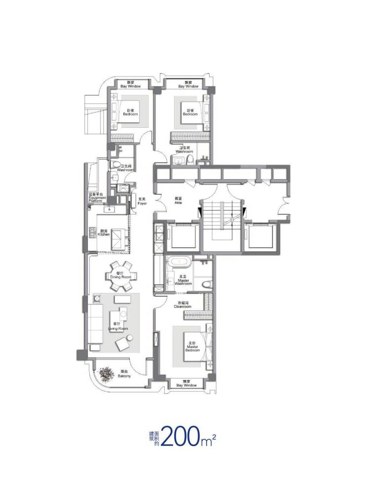 200㎡:内环内·小洋房·奢适大三居;类一梯一户,双主卧套房,享受4000万以上级别的装标及社区品质;内环内稀缺洋房,类一梯一户设计,私密性好;舒适大三房,双套房尺寸设计;