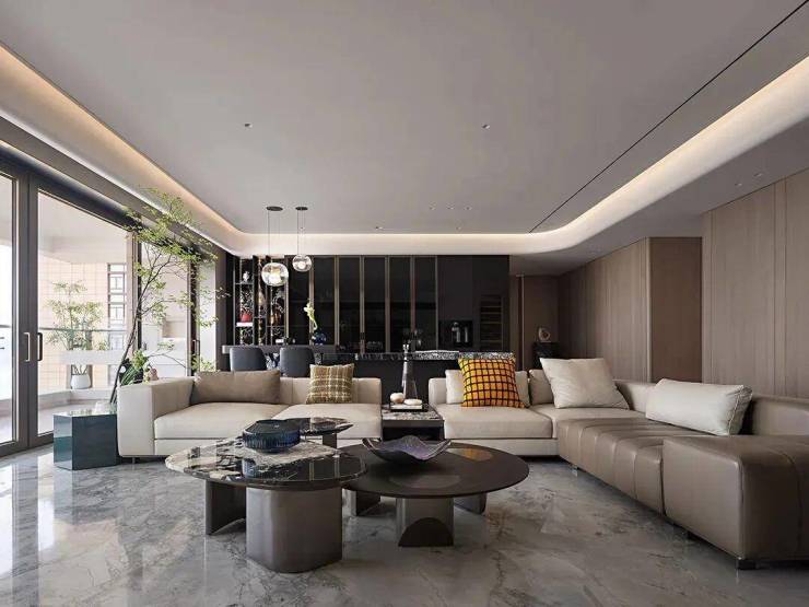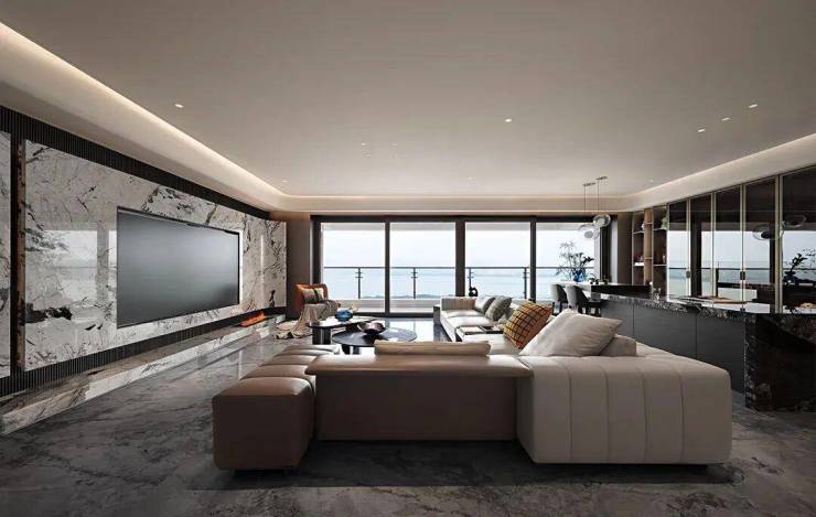 约6米客厅与餐厅、厨房及阳台一体化布局,让空间互动更高效,承载家人欢聚时光