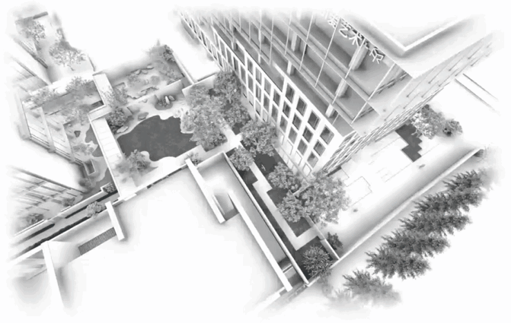 景观起始认同“大道至简”的简约之道,推崇返璞归真的自然之感,表现出淡雅的自然之美。采用大面积的开放空间,配以低矮的灌木丛和疏朗的树木。以一种视野开阔、心旷神怡的“旷”感,迅速吸引游客的注意力,为后续的探索之旅奠定愉悦的基础。
