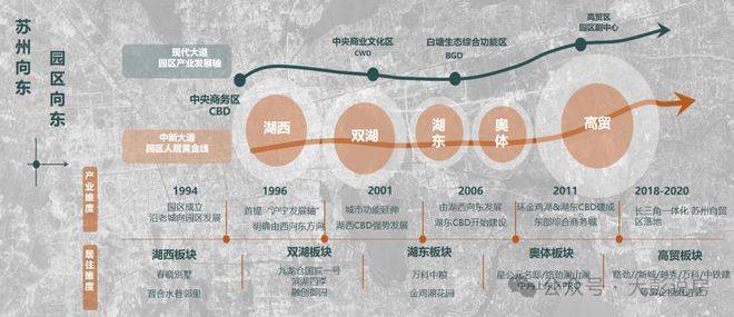 苏州未来城市发展总体布局“一核四城”,北部相城高铁新城,南部吴中吴江太湖新城,西部新区太湖科学城,东部园区高贸新城,高贸新城起步最晚,潜力最大,拥有园区核心资源加持,未来可期。