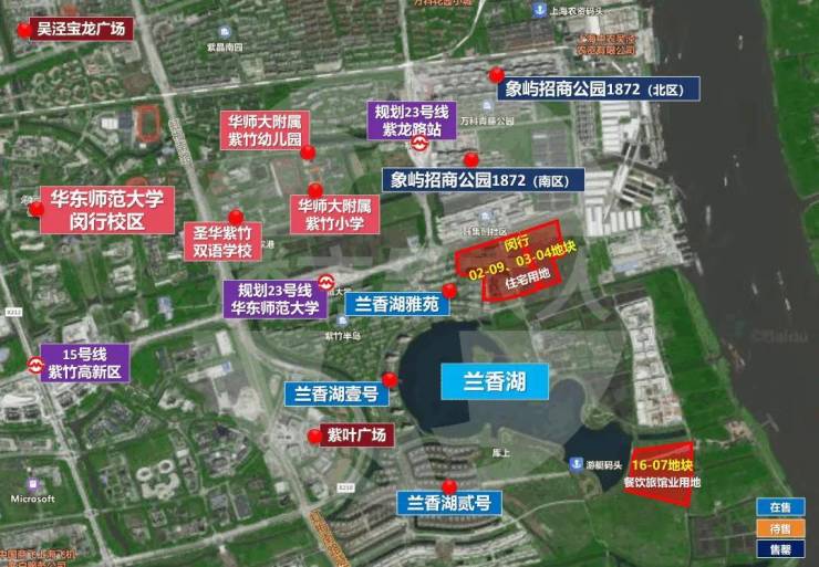 地块所在的紫竹区域占据浦江上游第一湾独特地理位置,核心区域有闵行第一大湖兰香湖,水域面积广阔,岸线绵延,湖光潋滟。