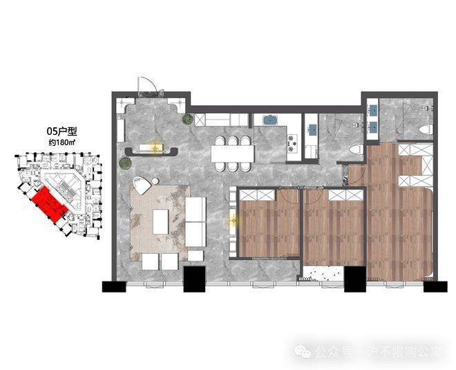 177㎡,东北朝向,4房(3+1)全能户型,边套+超大阳台+极致采光