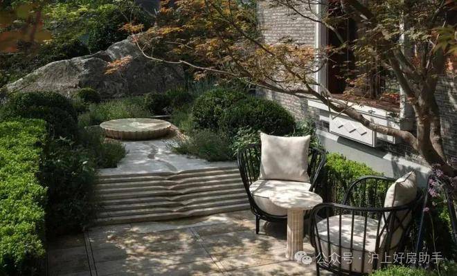 从庭园看向别墅,保留的老山墙、砖楣和门头,再加上悬挑阳台和层层露台,这种传统风貌带给人一种重见历史的感慨,又有温馨、宁静的现代舒适感。