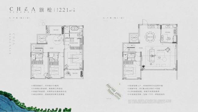 以建面约210㎡的上叠“云雾”和建面约221㎡的下叠“旗枪”为例。月陇云岚解决了很多叠院上下叠共用电梯这个痛点,在这个项目里,所有的户型都是私梯入户的。下叠入户口在南向花园,上叠在一楼也有北向私梯入户花园空间。
