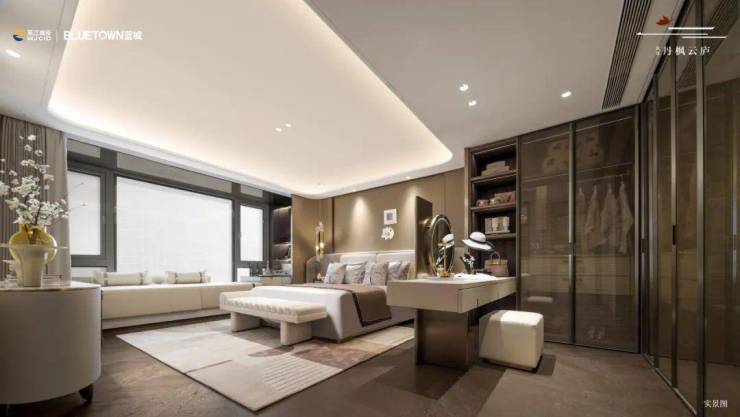 顶层星空层的整面玻璃幕墙外,晚霞与立面共染鎏金,室内外的光影界限在此消弭,诠释着“墅居即艺术”的奢装哲学。