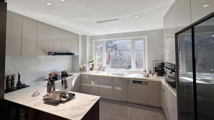 暮色渐沉,丹枫云庐的“光影艺术”方显真章。楼梯踏步的“隐藏灯带”如星河蜿蜒,与法国兰舍新风系统的低吟、德国威能地暖的暖意悄然相融。大金中央空调的静音气流拂过戴昆设计的臻奢空间场景,金属与石材在暖调灯光下泛起微光,空间成为一座私享的“光影博物馆”。