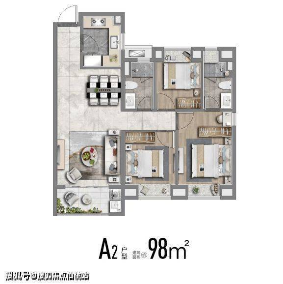 户型方面,项目将推出建面约98-124m²3-4房。全部是三开间朝南的户型,满足了上海人对于阳光的渴望。