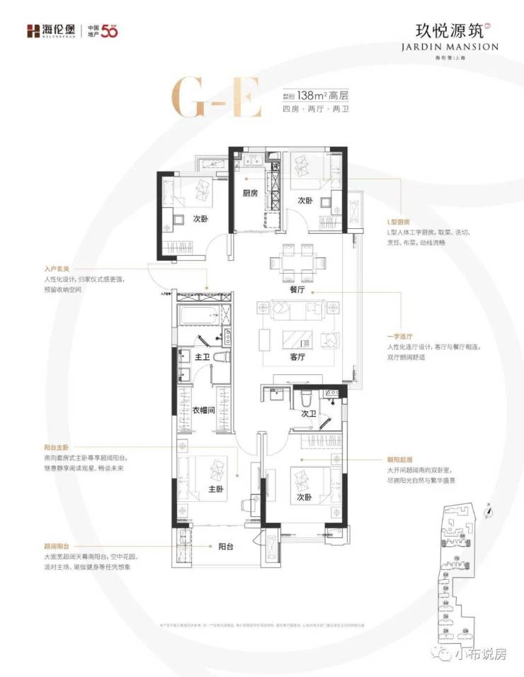 「建面约138㎡4房2厅2卫」