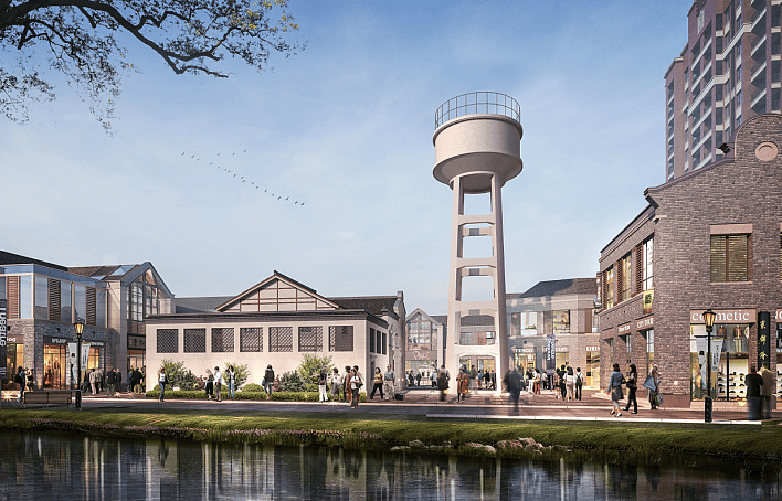 而海伦堡玖悦源筑全新的住宅部分是与这两个文物同在,上图的王宅,是典型的石库门建筑,岁月洗礼,外墙已斑驳;而南侧的这个水塔,在上世纪六十年代,是当时南翔的主要供水来源,极具历史意义。