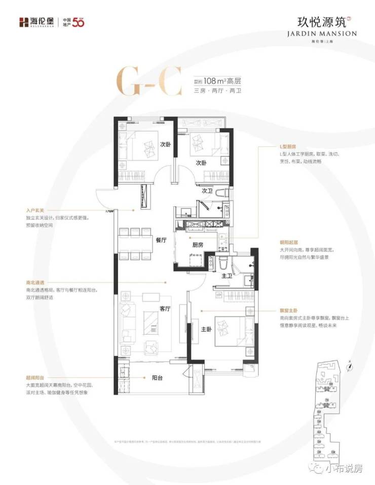 「建面约108㎡3房2厅2卫」