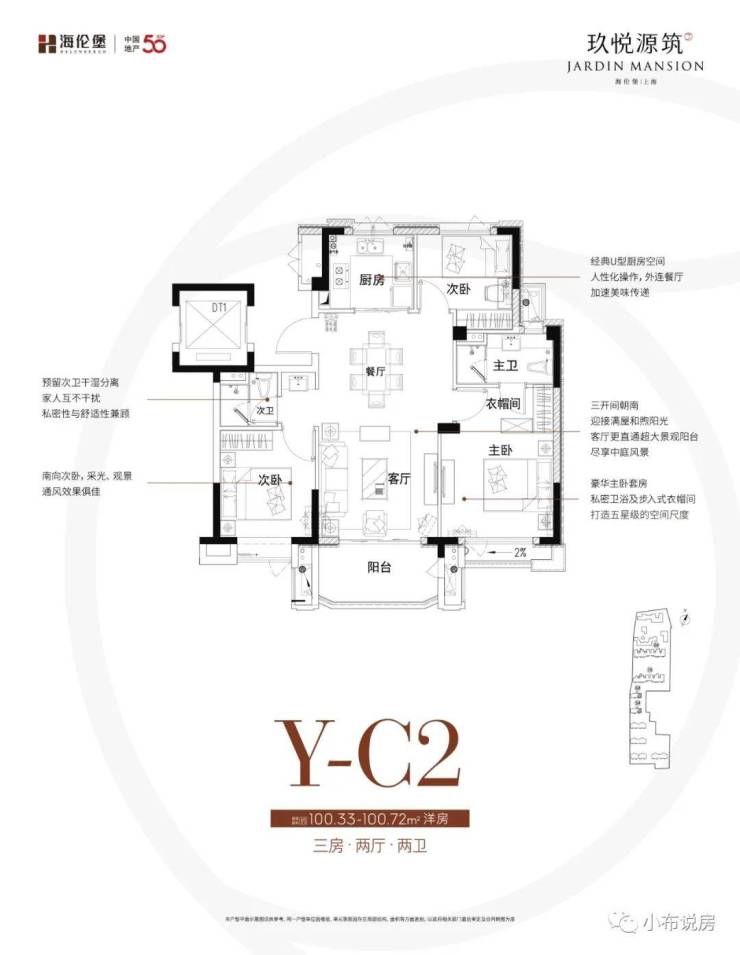 「建面约100㎡3房2厅2卫」