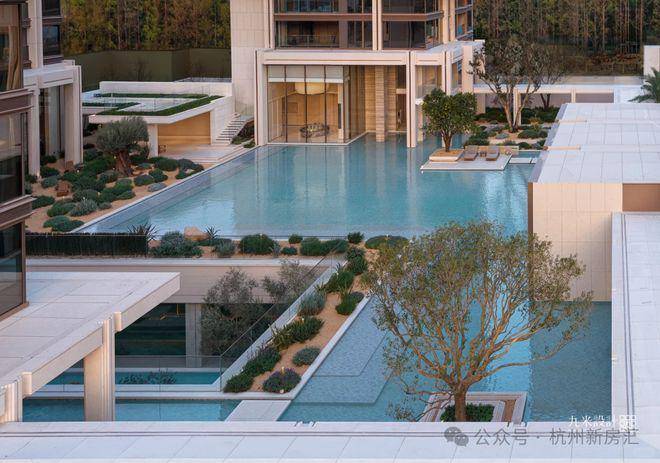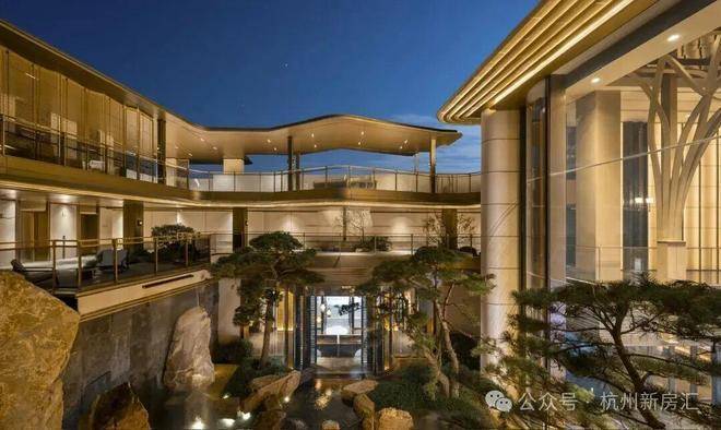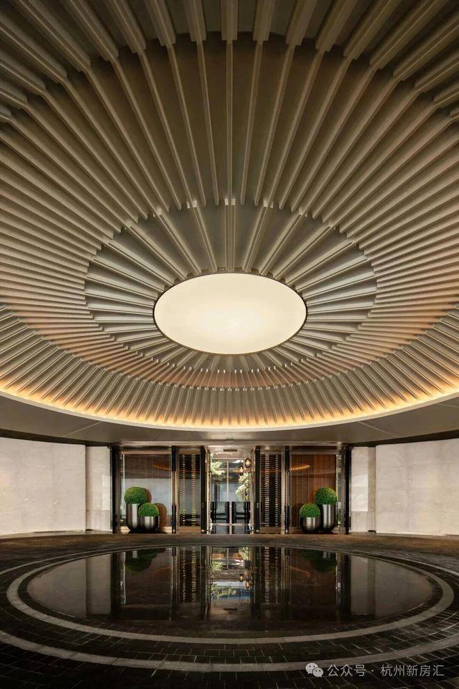 约43米恢弘门庭两侧黑松耸立,挑高约12米的归家大堂洒下尊崇感,钱塘江潮涌的曲线凝固在露台边缘,星河触手可及。