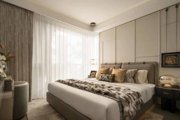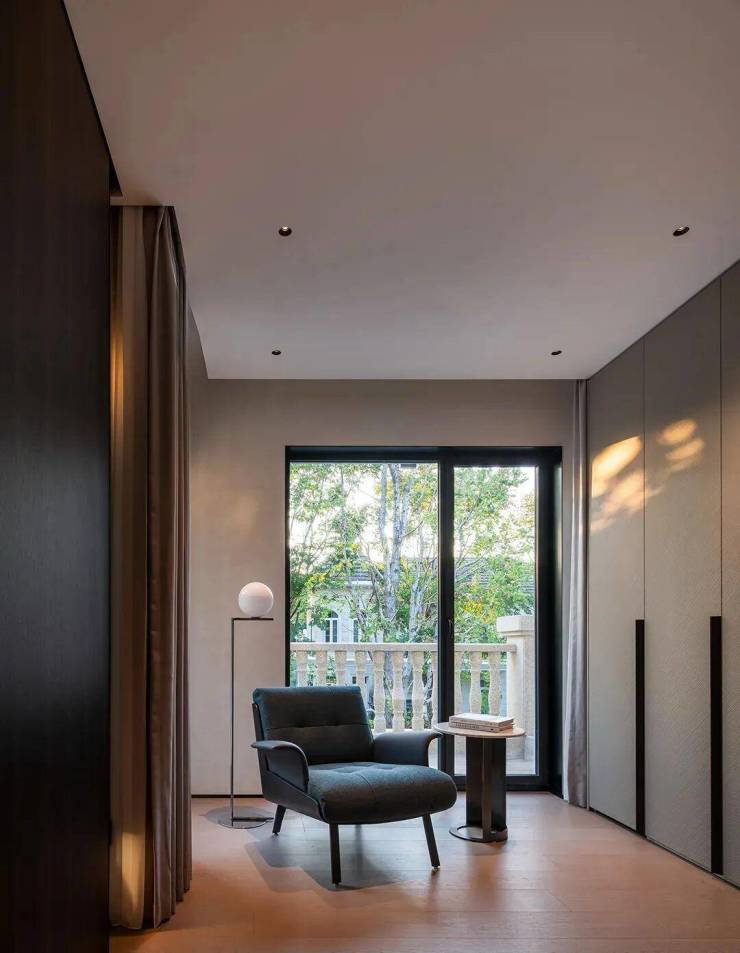 站在落地窗前,你可以看到清晨的第一缕阳光是如何将湖面照应的波光粼粼,也可以看到飞鸟拂过水面,吹进家中的风里都带着微润的水汽和青草香。