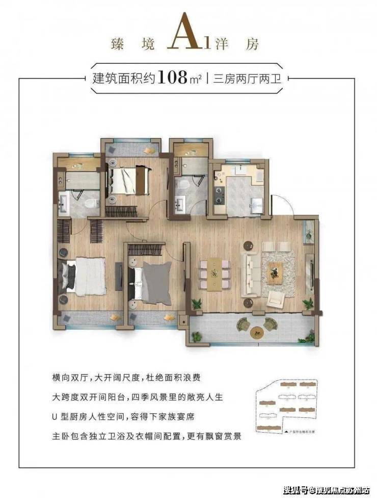 今年年中,领证首开,现场人气居高不下,销售场面十分火爆,目前还有部分约108㎡户型和底复产品在售。建面约108㎡户型虽然只有百平多一点点,却拥有三室两厅两卫的空间配置,约6.2m大横厅和跑道式阳台的组合让人忍不住直呼宽阔。南向约12.6m的超大面宽,让采光通风和瞰景效果直接拉满。
