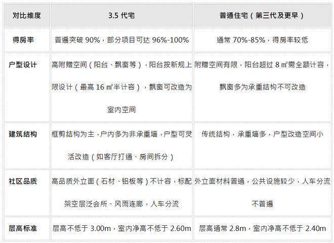 根据上海最新的住宅设计规范,3.5代宅是2025年新规实施后的新一代住宅产品,相比普通住宅(主要指第三代及更早的住宅)在多个方面有显著优势。以下是两者的详细对比:
