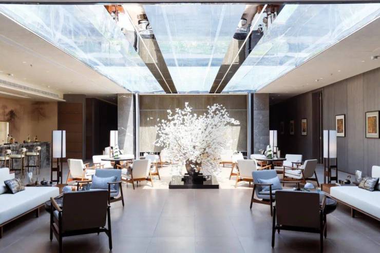 以上海之鱼江南风为底色融汇新亚洲风格,精选材质构筑简洁明快的外立面,运用精细化材料与工艺打造出轻盈檐口与精致线脚,构建平展、舒卷、优美、儒雅、精致的新江南建筑艺术。