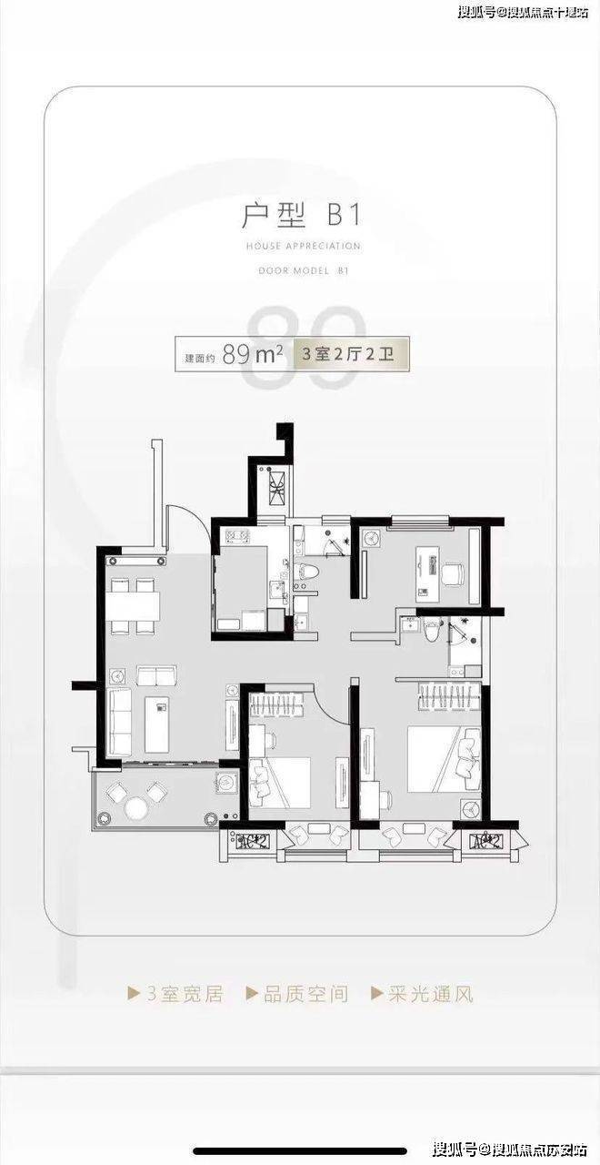建滔以精益求精的态度打造约89m²的空间,真正实现了舒适型的3房两厅两卫布局,是建滔,对待空间利用率的苛求,和打造高舒适人居的初心。