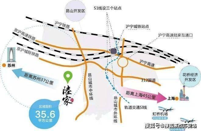三块三横两纵,交通路网以及京沪高速陆家出口。