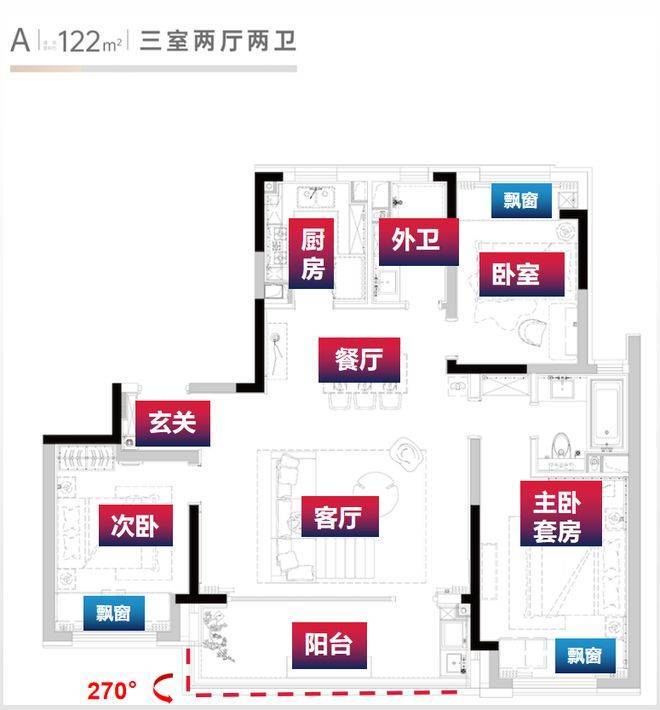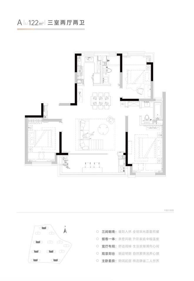 建筑面积约122㎡,3室2卫
