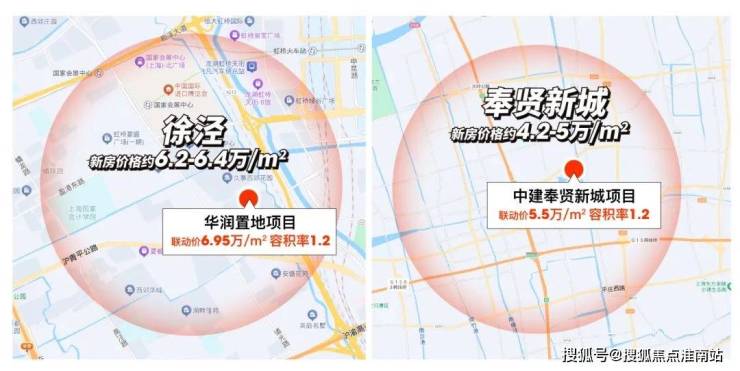 比如青浦徐泾容积率1.2的宅地和奉贤新城容积率1.2的宅地,比起板块其他新房,联动价至少高5000元/㎡!