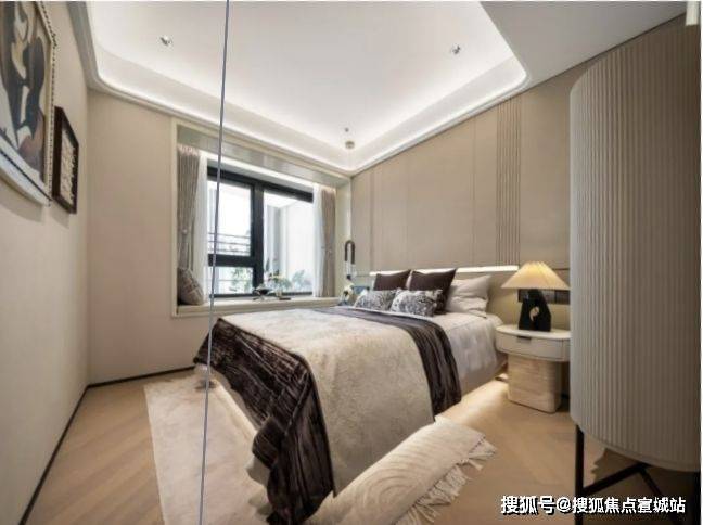 其二,大主卧带约270°飘窗,市面罕见,秒杀同级紧凑四房主卧的舒适度、采光和视野。