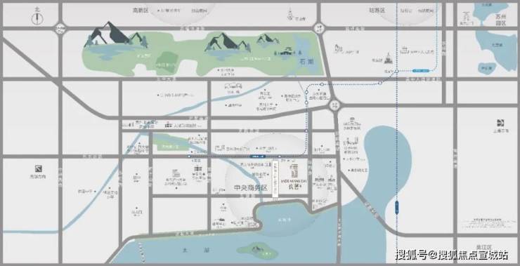 目前苏州整体城市规划了一核四城”的发展战略方向,吴中太湖新城位于苏州南部,是一核四城的重点发展片区之一。
