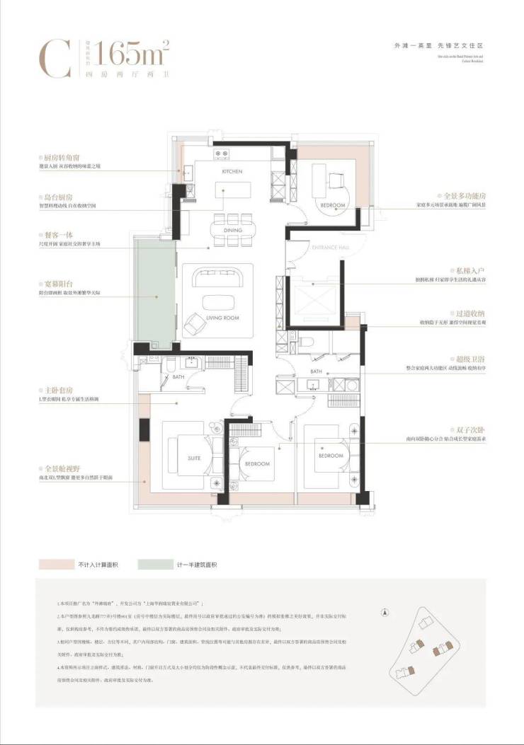 建面约165㎡4房: