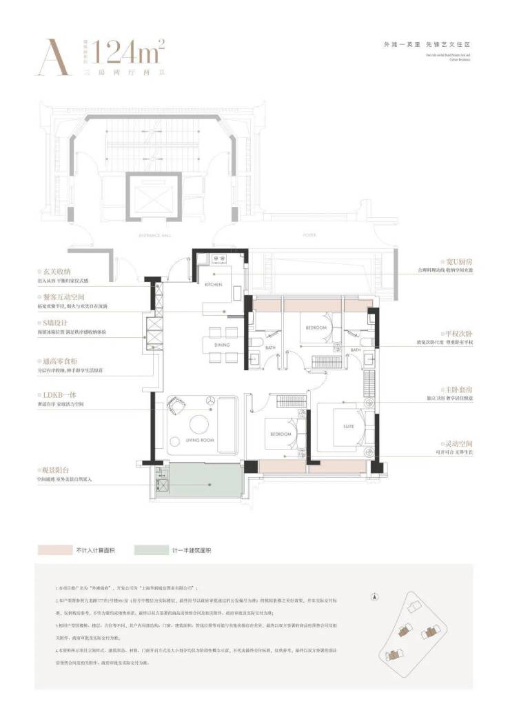 建面约124㎡3房: