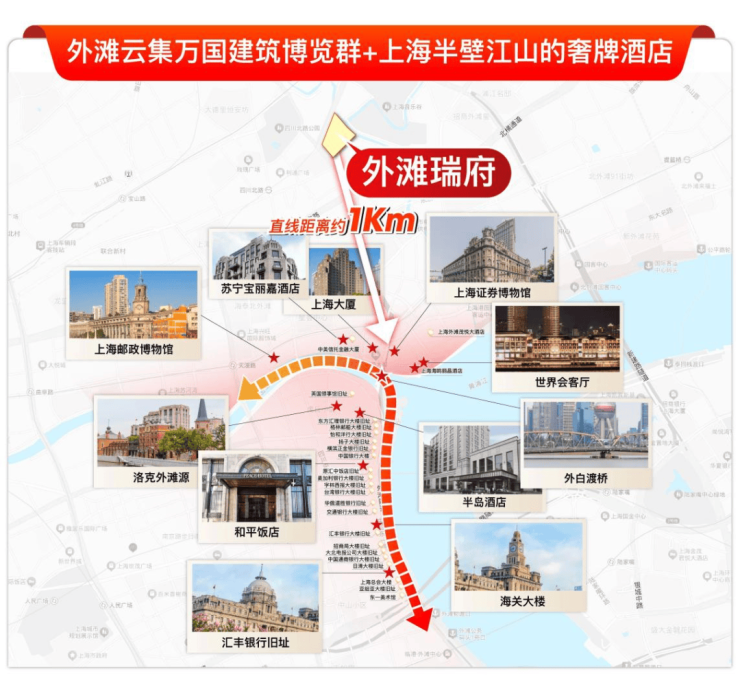 外滩瑞府,地处上海内环最“根正苗红” 的位置 —— 外滩1 公里生活圈。如果说内环是上海豪宅的 “第一梯队”,那外滩板块就是 “内环中的内环”。
