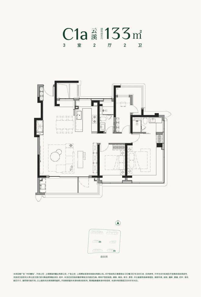 建面约133㎡3房2厅2卫:该户型在三阳台+次卧约270°转角阳台+主卧约270度转角飘窗设计的基础上再度升级。