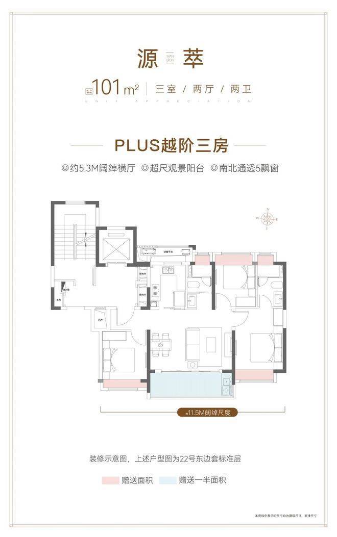 其次,产品上:项目建面约101-124㎡房源一梯两户、建面约142㎡两梯两户。