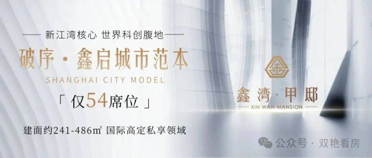 鑫湾甲邸位于第三代国际社区的标杆区域——新江湾城核心位置,是一座涵盖高端豪宅项目嘉誉湾、26万㎡顶级综合集中性商业配套、生态甲级写字楼、五星级凯悦国际酒店及酒店式公寓、一线星级影院的43万㎡高端城市旗舰综合体。