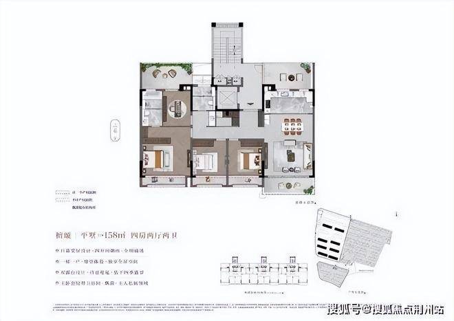 一梯一户;南侧T型超大景观阳台+北侧双露台;套房主卧,步入式衣帽间