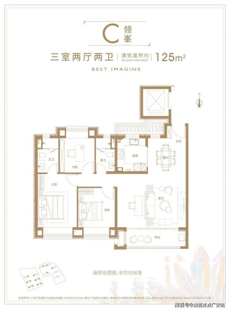 户型预留了灵活的空间,根据家庭需求,可以变身4房,打造私人的书房或工作室,体现出户型成长性的一面。