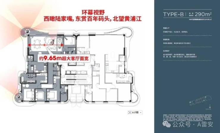 项目即将迎来五批次加推,约180㎡/240㎡/290㎡/388㎡全线产品登场,这其中约290㎡是首开爆款户型,时隔1年后再度返场,江景首排占位,享无遮挡环幕视野。