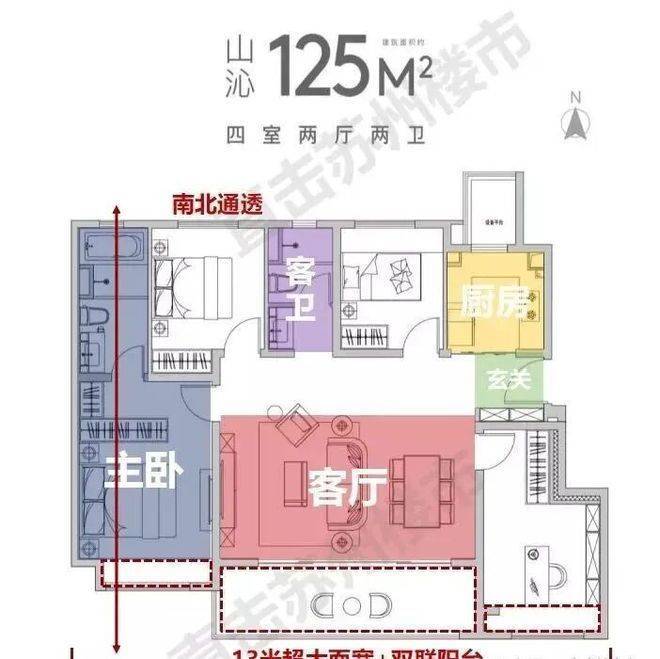 南向面宽高达13.15米,双联阳台超大落地窗的设计,如虎添翼,整个房间的采光面积十分