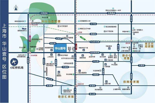 项目位于长宁区江苏路板块,地处静安,徐汇,长宁交界处,周边静安寺,南京西路,徐家汇,淮海西路商圈环绕,项目周围人问气息浓厚,有丁香花园(李鸿章故居),巴金旧居,武康大楼,宋庆龄故居等,往西就是定西路美食街,愚园路商圈仅在咫尺,为业主提供了生活的便利。
