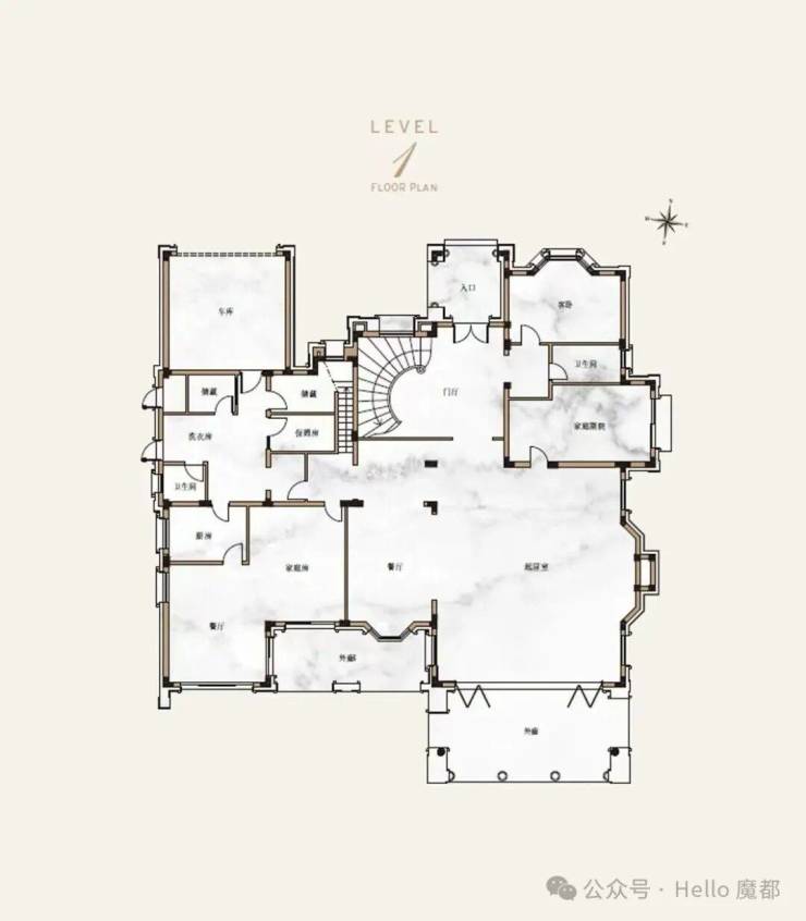 纯地上两层,建面约850㎡(7房4厅6卫)