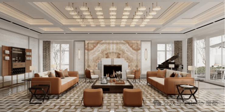 创意展示空间-爱马仕风格客厅彰显尊贵典雅