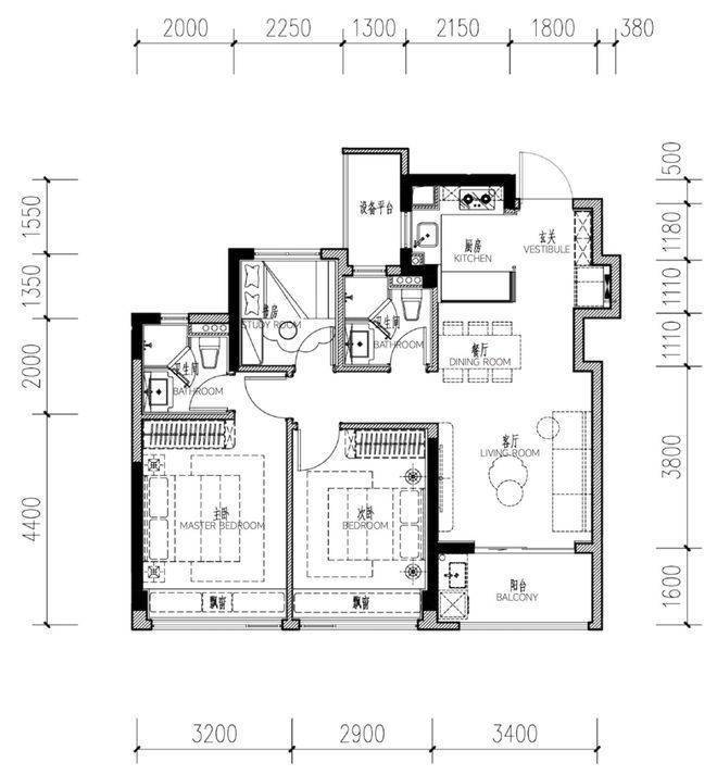 98㎡三房边套:5.8米边厅+飘窗,主卧套房配置