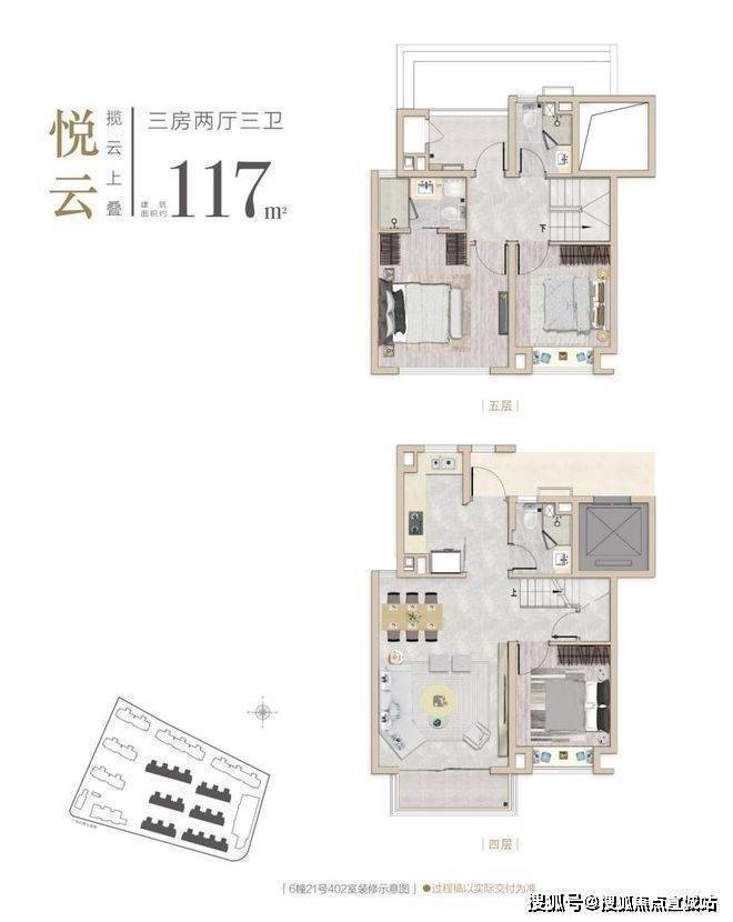 建面约117m²3房2厅3卫(上叠)