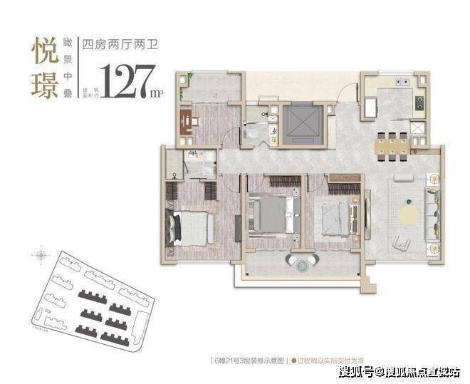 这个四房虽然建面只有127㎡,但因为是5层叠墅的高得房率,