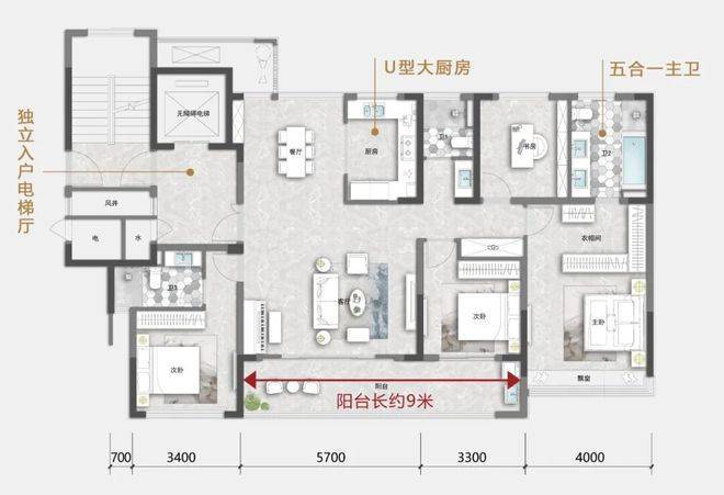 外接约9米宽大阳台,妥妥豪宅尺度。