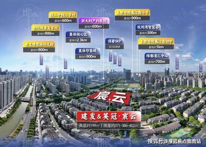 杭州建发英冠宸云售楼处电话:400-881-8994(售楼处最新电话)由3幢高层+3幢排屋组成,距杭州之门直线约2公里,奥体印象城直线仅约900米,位于世纪城的核心。