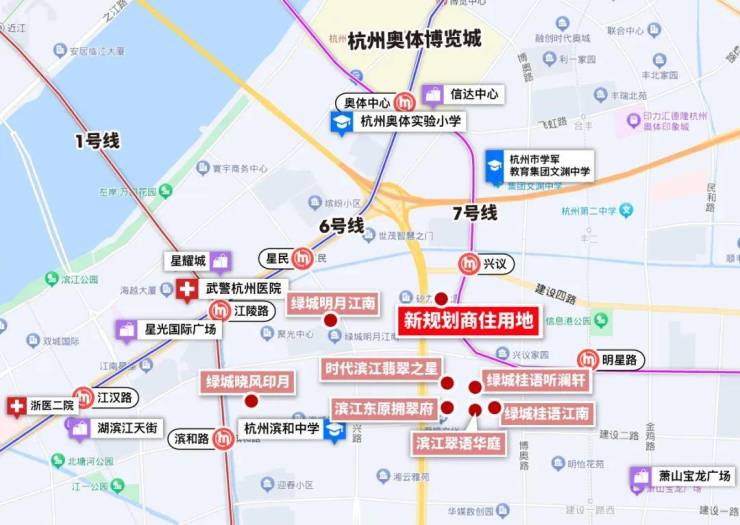 商业:奥体印象城直线约1.1公里、萧山宝龙广场直线约1.6公里等;