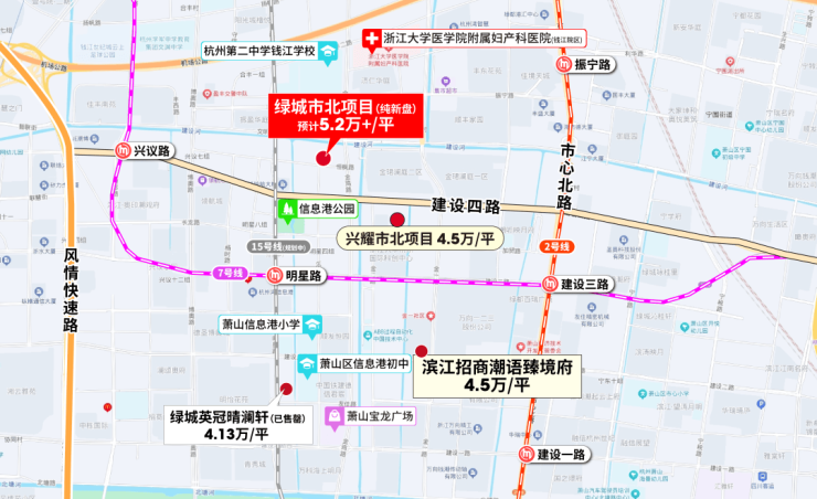 包括兴议地铁口的滨江奥印潮观府,之前小胖君有了解到部分资产配置的业主期待价位就是5.5万,和绿城市北项目比,奥印潮观府地段会更具优势。