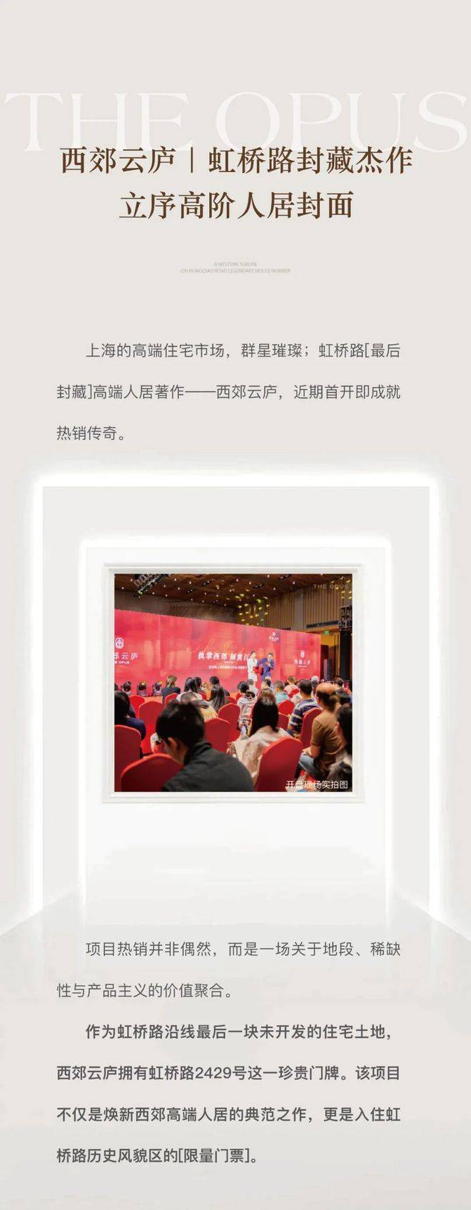 在上海,地段是不可复制的信仰。长宁区,作为上海高端居住文化的发源地之一,承载着百年历史文脉与国际生活氛围。而今,西郊云庐,这座位于虹桥路2429号的稀缺之作,以“云庐雅庭”之名,成为长宁近十年来罕见的纯住宅新盘,不仅是一次产品的发布,更是一场对城市核心资源的终极占有。