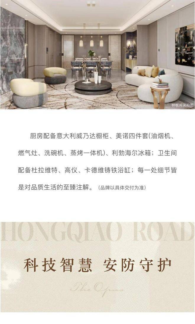 建筑特色:建筑设计融合现代简约风格与虹桥路历史风貌,外立面采用石材与金属线条,社区内部打造沉浸式园林景观,配备全龄活动区。3